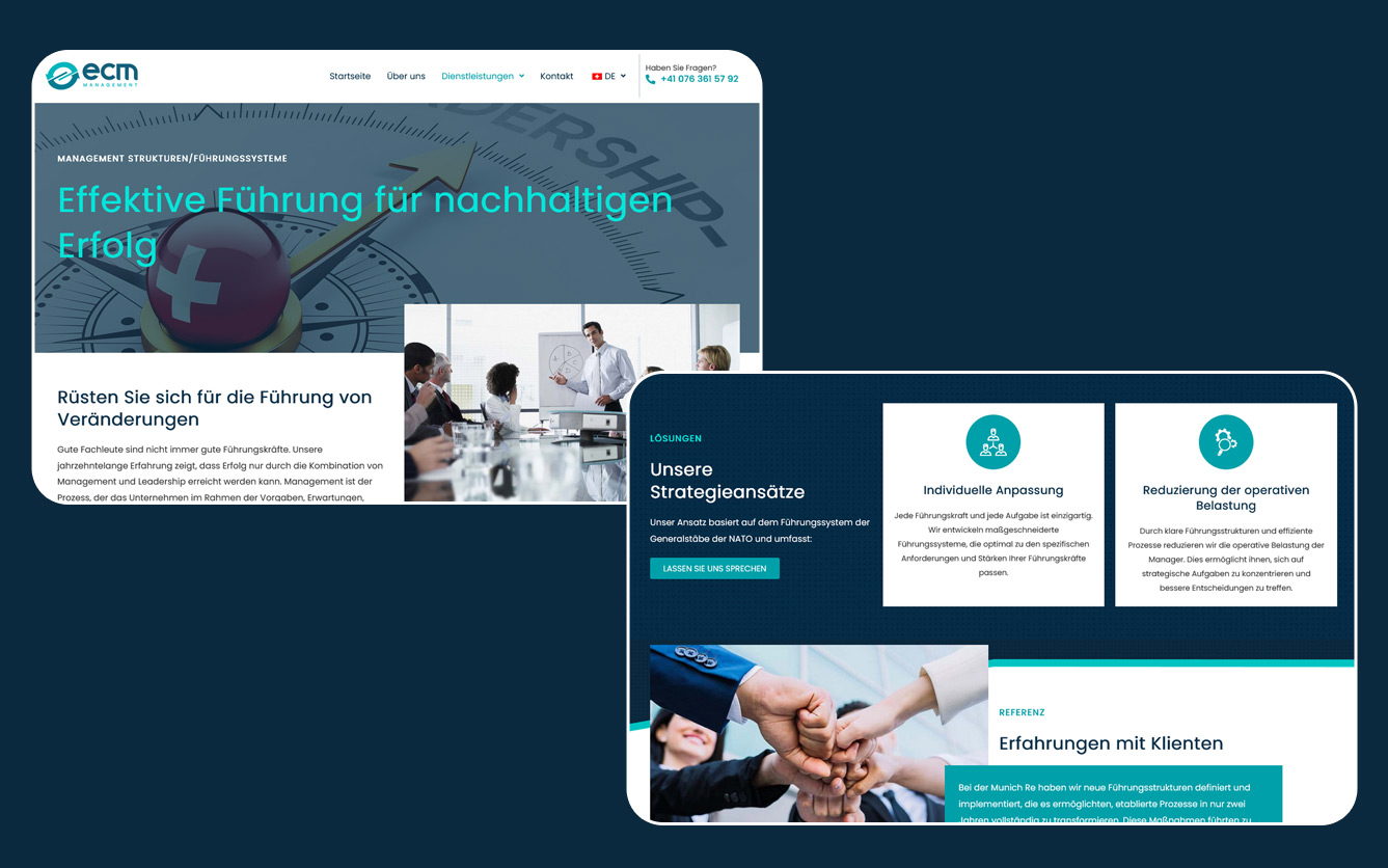 I had the privilege of working on the redesign of ECM’s website, bringing a fresh, modern approach to their online presence while aligning it with their core values of pragmatic management. ECM is known for its thought leadership and expertise in management consulting, and the website needed to reflect their innovative approach to solving business challenges and creating sustainable success.