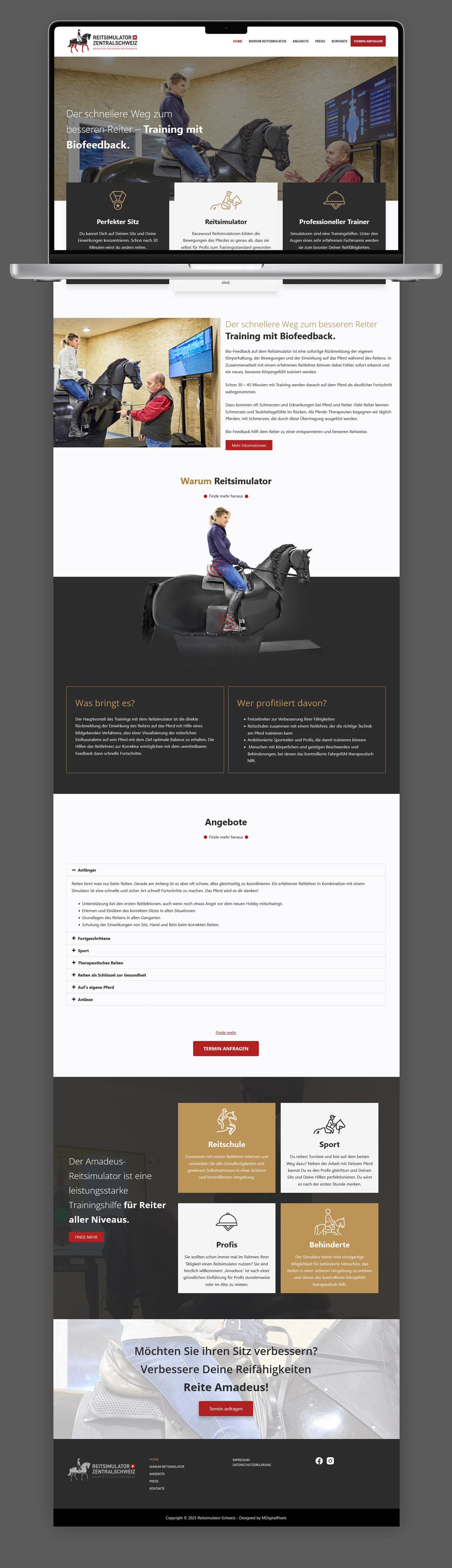 I had the pleasure of working on the website design and development for Reitsimulator Zentralschweiz, a leading provider of advanced horse riding simulator training in Central Switzerland. The goal was to create a user-friendly, professional online presence that reflects the cutting-edge technology and personalized training experience they offer to both novice and professional riders.